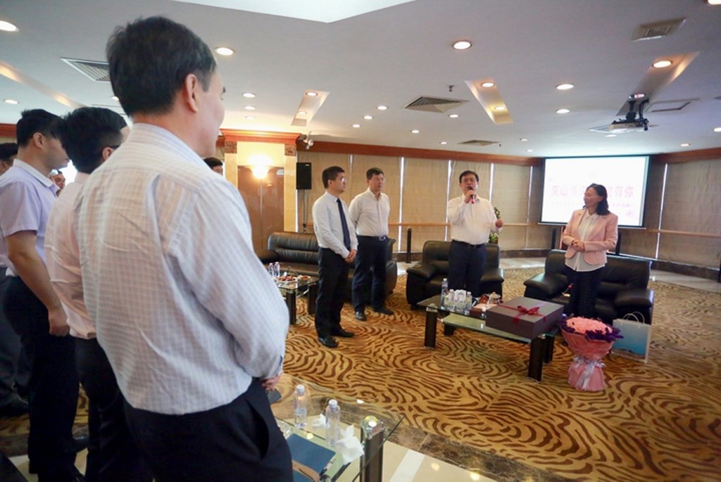 田俊彦总经理在欢送会上讲话,感谢王芬女士对集团发展所做的重要贡献